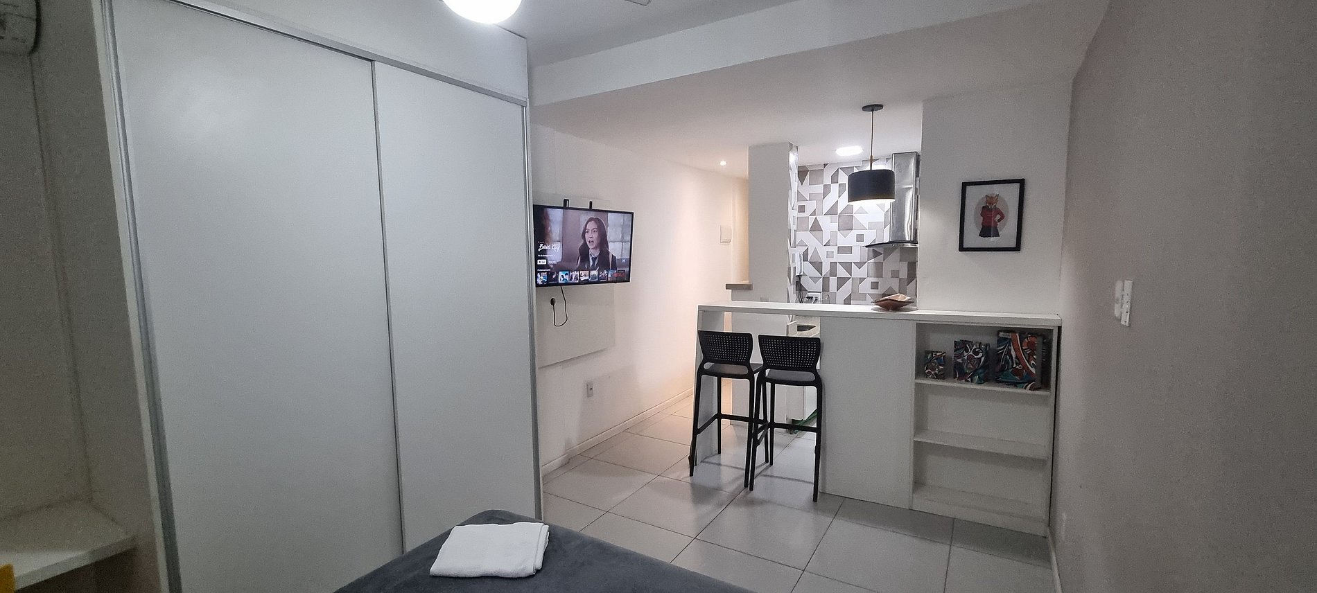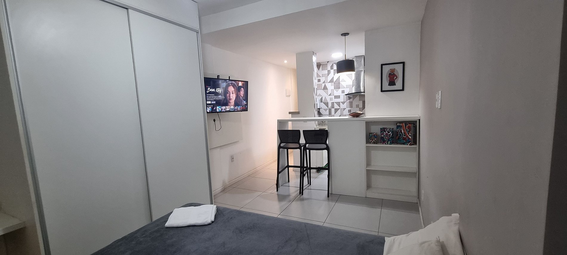 Nosso studio foi pensado para oferecer conforto, praticidade e uma experiência agradável para os seus hóspedes: - Ar-condicionado split silencioso. - Wi-Fi de 400 Mega bidirecional, ideal para trabalho remoto. - Smart TV com acesso YouTube etc. - Mesa de trabalho/estudos dedicada. - Cozinha equipada com frigobar, fogão, micro-ondas, cafeteira e utensílios (panelas, pratos, talheres etc). - Secador de cabelo e ferro de passar disponíveis. - Sofá-cama confortável para hóspede extra. - Banheiro com chuveiro potente e aquecimento automático. - Prédio com portaria 24 horas e câmeras em todos os andares. - Ambiente inclusivo e respeitoso para todos.
