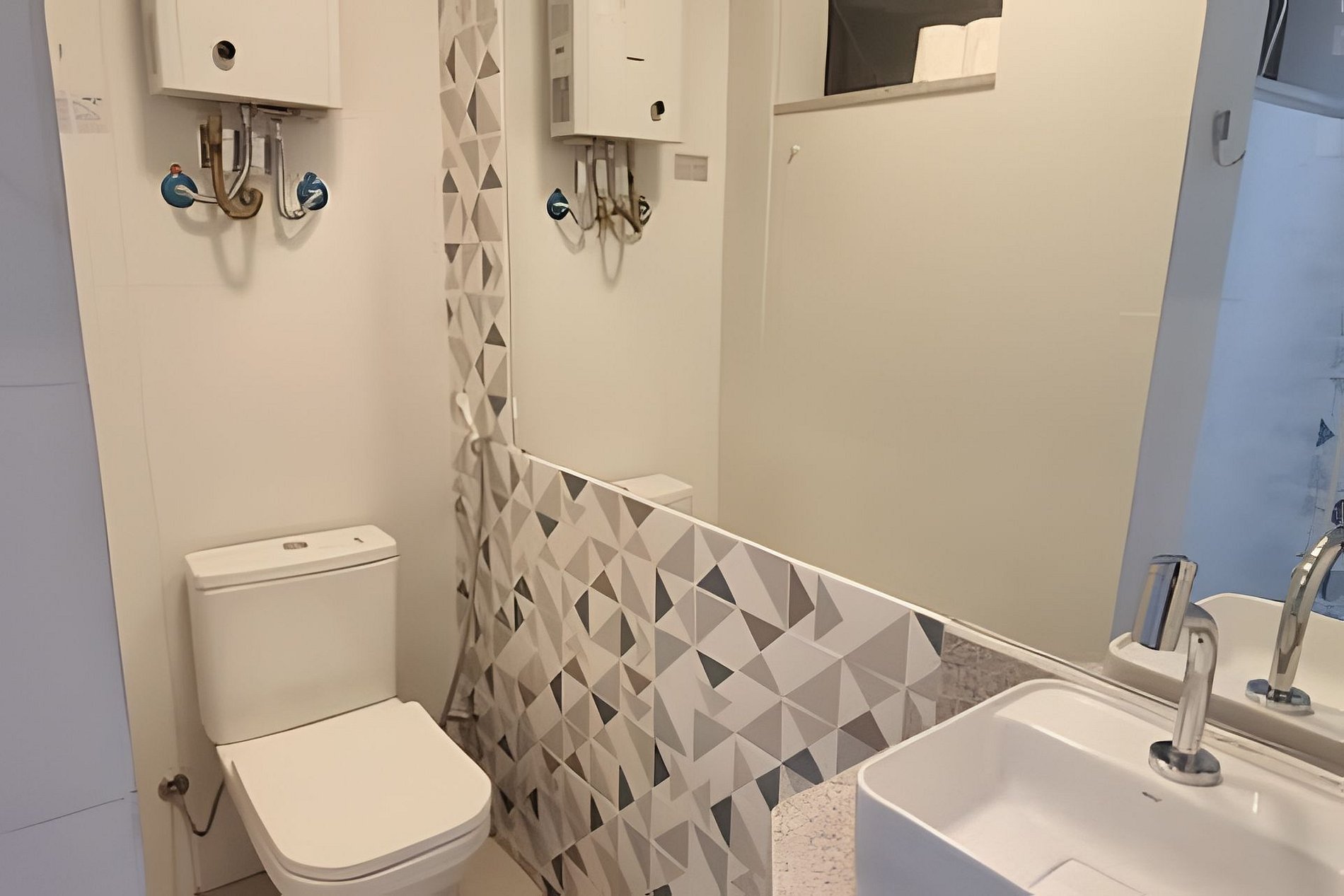 - Banheiro com chuveiro potente e aquecimento automático.