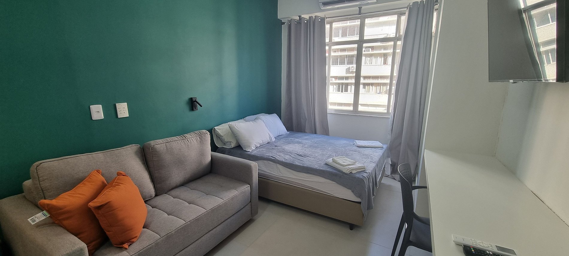 Este studio está localizado a poucos passos do metrô e a apenas duas quadras da praia de Copacabana. Situado no nono andar de frente, o apartamento oferece proximidade a uma variedade de restaurantes, bares e supermercados na região.